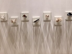 Base Materials: Acrylic plate, Plywood, Edelman Ostrich Geranium Leather, Green Blue “Trengganu Sibylla” Cicada,Acrylic, Paint