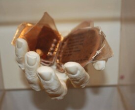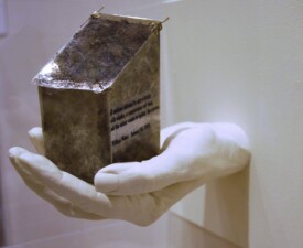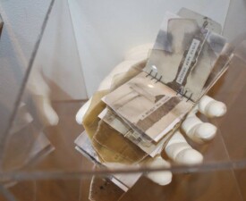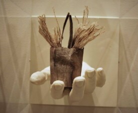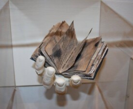 When Thought Is Hammered In is a meditation on memory, force, and containment. This sculptural book, bound in metal mesh and filled with rusted nails, evokes the weight of ideas that are not gently absorbed but driven in—sharp, repetitive, unrelenting. The brush, resting quietly across its surface, becomes a symbol of contrast: delicacy poised beside compulsion, intention beside impact.