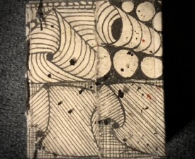Bone Folders Group Exposition. Materials: Arches Text Paper, Cave Paper Papers, Sumi Ink, Walnut Ink, Collage Materials, Fabrics 2016