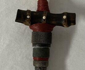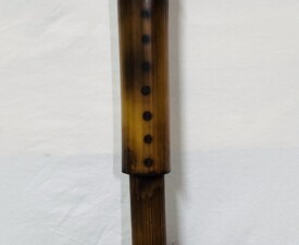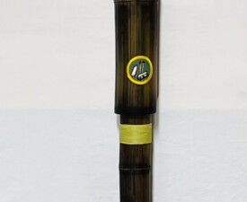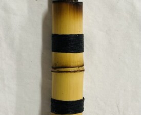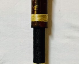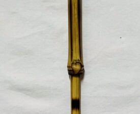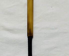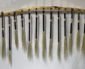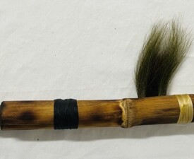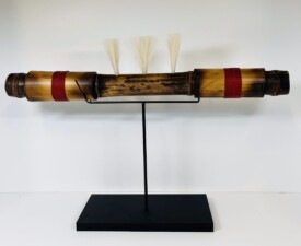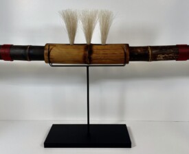 Materials: Bamboo, Feathers, Animal Hair, Irish Waxed linen, Vintage, Leather Glass Case. Size: 15" x 2.5" x 1". 2025