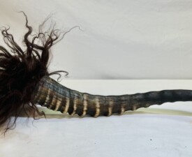 Materials: Springbok Horn, Icelandic Sheep Skin, Acrylic Paint