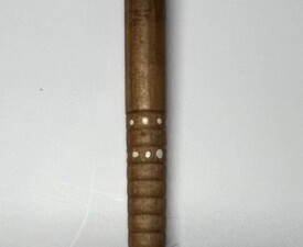 Materials: Stick, Paper, Ferrule by Pamela Rogalski, Linen Thread, Tampico Fibers. Size: 16" x 1.25" x 1.25". 2025