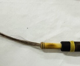 Materials: Bamboo, Horn, Skunk Tail, Ferrule by Pamela Rogalski, Linen thread. Size: 16" x 1/5" x 2.75". 2025