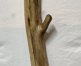 Materials: Wooden Found Object, Goat Hair, Miniature Plastic figure. Size: 10.5" x 4.5" x 1.75" 2025